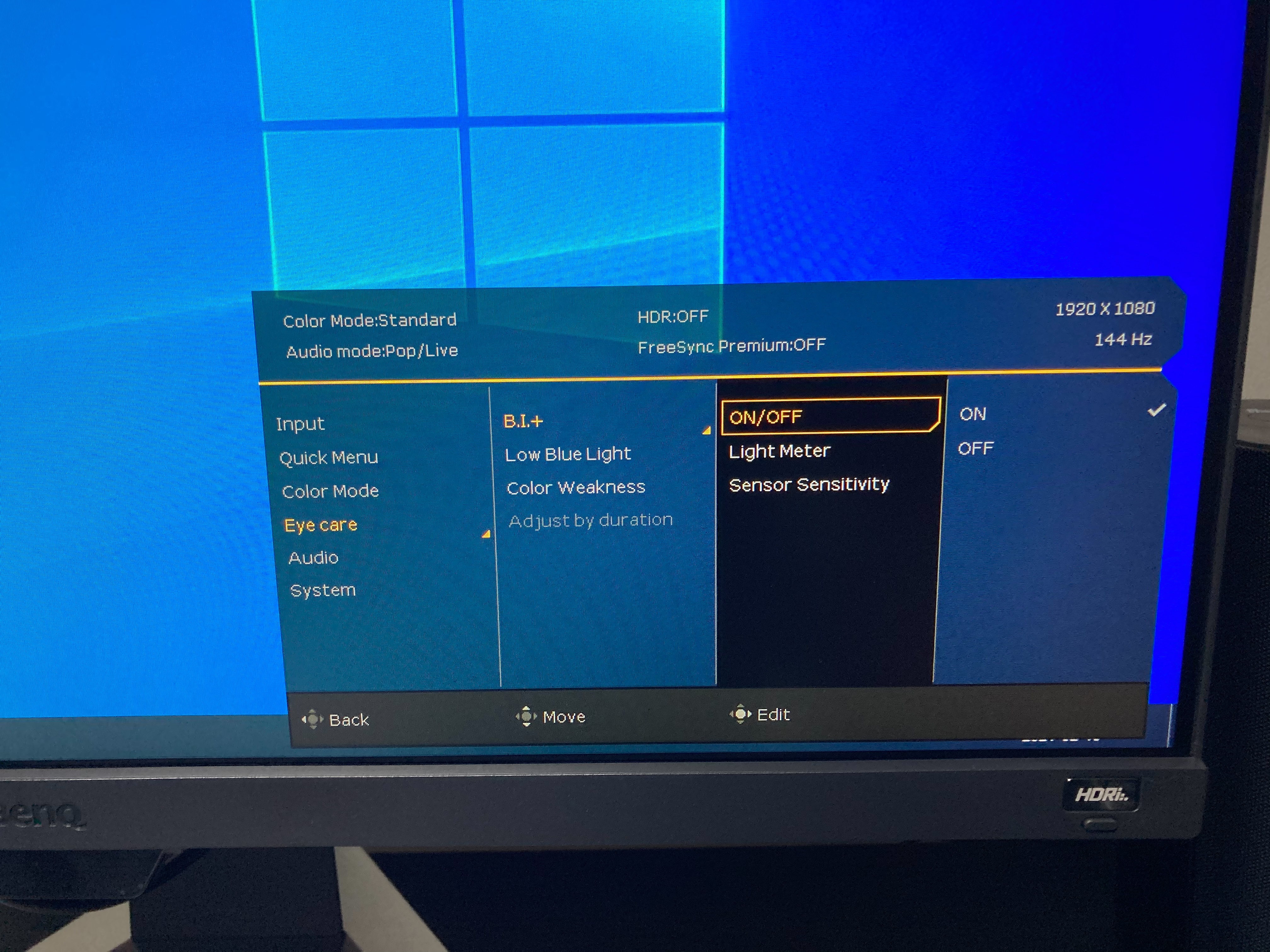 스마트폰은 주변 조도에 맞춰 밝기를 조절하는 기능이 들어있고 대부분 이를 편리하게 사용하고 있습니다. 아이폰의 경우 색온도까지 조절해주는 트루톤 기능이 있고 이 기능 때문에 아이폰을 쓰는 유저들도 있을 정도입니다. 하지만 모니터는 일반적으로 해당 기능이 없습니다. 단가 문제도 있고 실내에서 고정해서 사용하기 때문에 해당 기능이 필요 없을 거라는 거죠. 하지만 실내라도 주변 조도는 계속 바뀌기 마련이고 저녁에 조명을 끄고 게임을 하는 일도 있습니다. 밴큐 EX2510S는 B.I.+ 기능을 켜면 전면에 있는 센서가 외부 조도를 인식하여 자연스럽게 눈이 편한 적절한 밝기와 색온도로 조절해줍니다. 이렇게 밝기와 색온도가 복합적으로 조절이 되다 보니 실제로 외부 조도에 대해서 굉장히 눈이 편안한 상태로 만들어주었습니다. 실제 사용하면서 외부 조도에 대해 일일이 밝기와 색온도를 수동으로 조절하기란 사실상 힘들어서 주변 조도에 맞는 디스플레이 상태를 원한다면 단연 돋보이는 기능이었습니다.